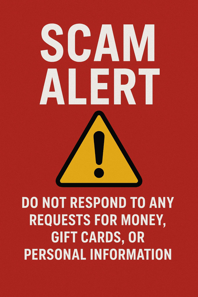 Please do not respond to any emails that appear to be from Fr. Tim asking for money, gift cards, or personal information. Scammers have been sending fraudulent messages using his name.
