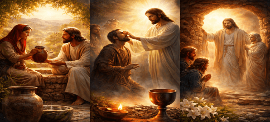 · Evening Three – “Lazarus, Come Out” – Based on the Raising of Lazarus (John 11) — Hear the voice of Jesus calling us out of the tombs of fear, sin, and despair into new life, freedom, and hope.