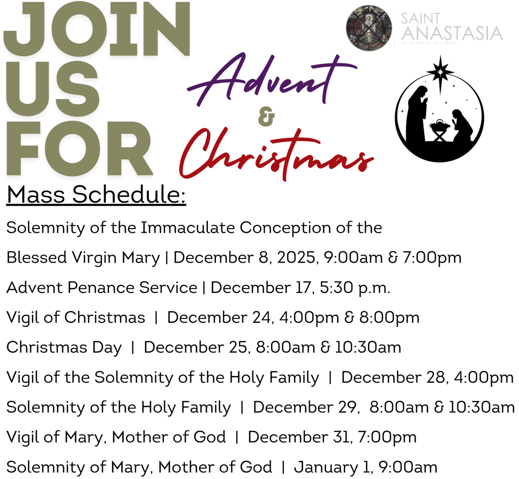 Join us for the Thanksgiving, Advent and Christmas Seasons.